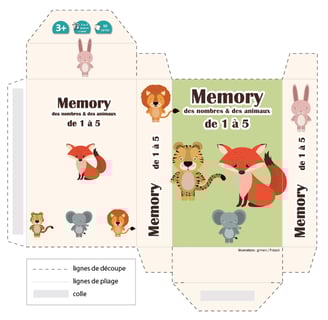 Dans ce jeu simple qui ne contient que 10 cartes, l'enfant doit retrouver les cartes identiques. En comptant les animaux sur chacune des cartes, il découvre aussi les notions de quantités.